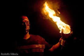 What that man is doing? Hold a fire ball with that expression. This is Nejapa tradition which is Bolas de Feugo that celebrated same with our nation day which is 31st August every year at Nejapa, El Salvador.